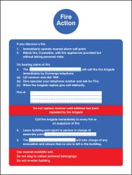 11401E: Fire action brigade dialled manually Material: 1: Rigid Plastic Size: E (200x150mm)