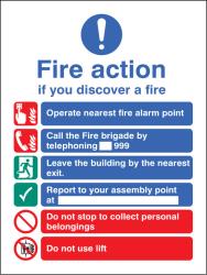 21419H: New EEC fire action (manual call 999) Material: 2: Self Adhesive Vinyl Size: H (300x250mm)