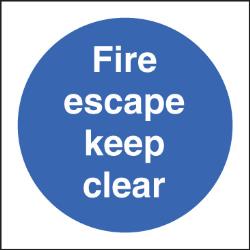 21605U: Fire escape keep clear Material: 2: Self Adhesive Vinyl Size: U (100x100mm)