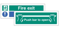 59544: Fire exit Keep Clear/Push bar to open Double sided self adhesive window sticker 300x100mm
