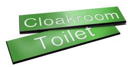 51571: Engraved Sign with adhesive backing - 140x35mm White text on green
