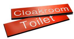 51575: Engraved Sign with adhesive backing - 35x70mm White text on red
