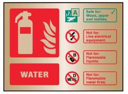 59484: Water extinguisher ID brass 150x200mm adhesive backed