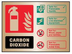 59486: CO2 extinguisher ID brass 150x200mm adhesive backed