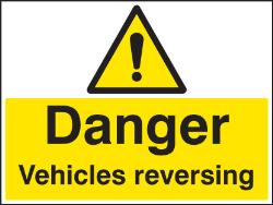 16417M: Danger vehicle reversing Material: 1: Rigid Plastic Size: M (600x200mm)