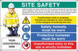 55119: Site safety, helmets, footwear, unauthorised entry custom banner c/w eyelets 1270x810mm