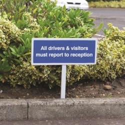 56580: Verge sign - All drivers & visitors must report to reception 450x150mm (post 800mm)