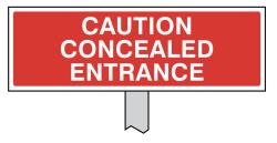 57128: Caution concealed entrance verge sign 450x150mm (post 800mm)