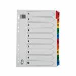 Set of 10 A4 dividers numerically tabbed (1-10). Ideal for well-organised filing. Punched to fit most standard A4 files. Mylar-reinforced tabs and holes for durability. Index page: at-a-glance view of sections. Colour: White with multi-coloured tabs.