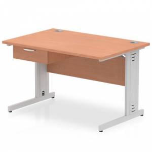 Impulse 1400 x 800mm Straight Office Desk Beech Top Silver Cable Managed Leg Workstation 1 x 2 Drawer Fixed Pedestal