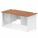 Impulse 1600 x 800mm Straight Office Desk Walnut Top White Cantilever Leg Workstation 2 x 3 Drawer Fixed Pedestal