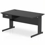 Impulse 1400 x 800mm Straight Office Desk Beech Top Silver Cantilever Leg Workstation 3 Drawer Mobile Pedestal