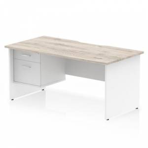 Impulse 1600 x 800mm Straight Office Desk White Top White Cable Managed Leg Workstation 3 Drawer Mobile Pedestal