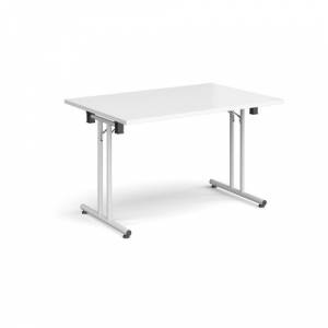 Rectangular folding leg table with chrome legs and straight foot rails 1400mm x 800mm - white