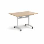 Rectangular deluxe flip top meeting table with silver frame 1200mm x 800mm - Kendal oak