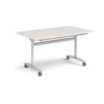 Rectangular deluxe flip top meeting table with silver frame 1400mm x 800mm -Light Grey