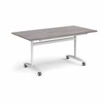 Rectangular deluxe flip top meeting table with white frame 1600mm x 800mm - Onyx Grey