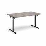 Rectangular folding leg table with black legs and curved foot rails 1400mm x 800mm - Onyx Grey