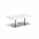 Brescia rectangular coffee table with flat square brushed steel bases 1200mm x 800mm - white