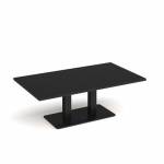 Eros rectangular coffee table with flat black rectangular base and twin uprights 1600mm x 800mm - Black