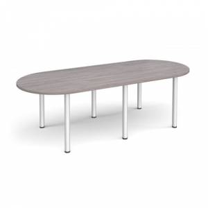 Radial end meeting table 2400mm x 1000mm with 6 chrome radial legs - grey oak