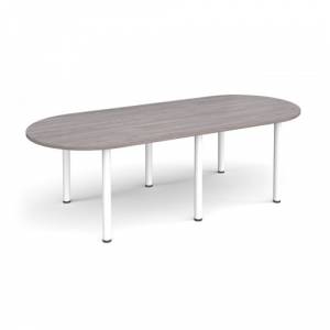 Radial end meeting table 2400mm x 1000mm with 6 white radial legs - grey oak