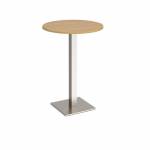 Brescia circular poseur table with flat square brushed steel base 800mm - oak