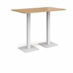 Brescia rectangular poseur table with flat square white bases 1400mm x 800mm - oak