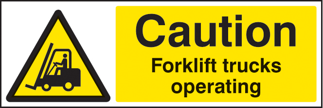 74215M: Caution forklift trucks operating Material: 7: Ultra Durable 2mm PET Size: M (600x200mm)