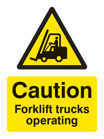 74215P: Caution forklift trucks operating Material: 7: Ultra Durable 2mm PET Size: P (600x400mm)