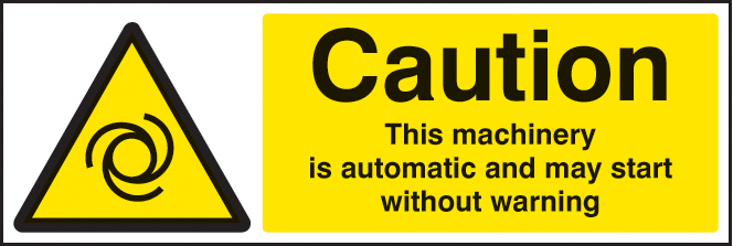 14228M: Caution this machinery is automatic etc Material: 1: Rigid Plastic Size: M (600x200mm)