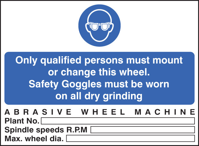 25009E: Abrasive wheel machine goggles must be worn Material: 2: Self Adhesive Vinyl Size: E (200x150mm)