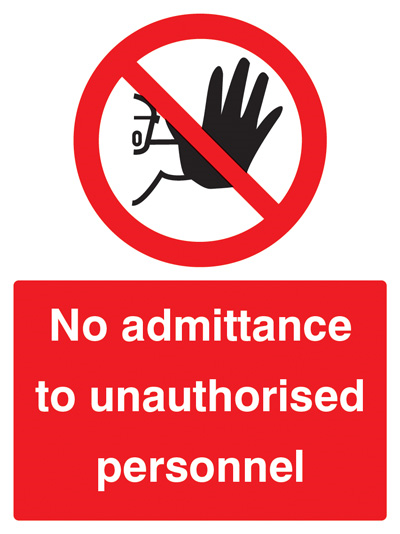 23205G: No access for unauthorised personnel Material: 2: Self Adhesive Vinyl Size: G (300x100mm)