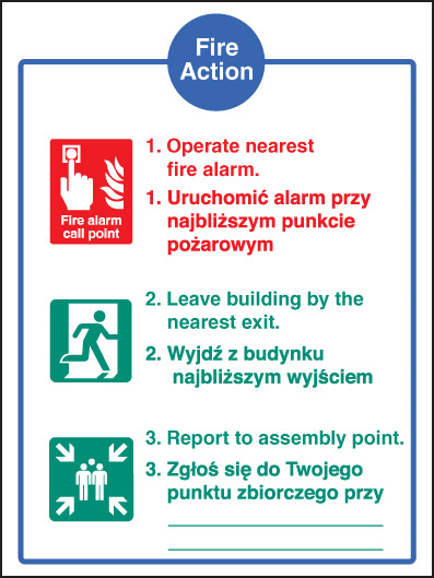 11405E: Fire action - EEC Material: 1: Rigid Plastic Size: E (200x150mm)