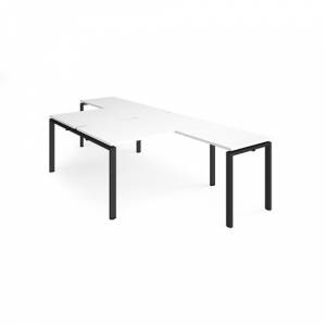 Adapt II back to back desks 1600mm x 1600mm - black frame, white top with oak edging