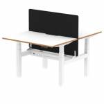 Air Back-to-Back Oslo 1200 x 800mm Height Adjustable B2B 2 Person Office Bench Desk White Top Natural Wood Edge White Frame with Black Straight Screen