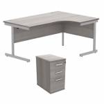 Astin Radial Right Hand SU Desk +Desk High Pedestal 1600x1200 Alaskan Grey Oak/Silver KF820137
