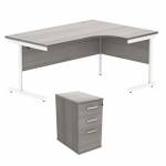 Astin Radial Left Hand SU Desk +Desk High Pedestal 1600x1200 Alaskan Grey Oak/Arctic White KF820148