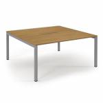 Connex Scalloped 1600 x 1600 x 725mm Back to Back Desk ( 2 x 1600mm ) - Silver Frame / Oak Top