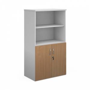 Duo combination unit with open top 1790mm high with 4 shelves - white with beech lower doors