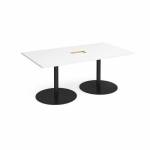 Eternal rectangular boardroom table 1800mm x 1000mm with central cutout 272mm x 132mm - black base, white top