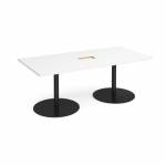Eternal rectangular boardroom table 2000mm x 1000mm with central cutout 272mm x 132mm - black base, white top