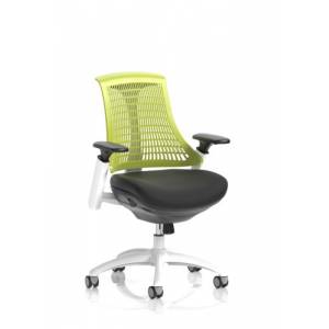 Flex Task Operator Chair White Frame Black Fabric Seat Green Back