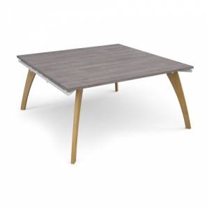 Fuze double back to back desks 2400mm x 1600mm with oak legs - white underframe, grey oak top
