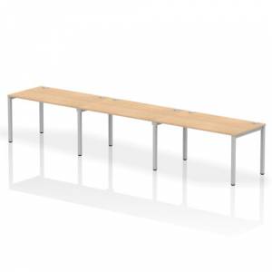 Impulse Bench Single Row 3 Person 1400 Silver Frame Office Bench Desk Beech