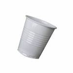 White cups suited for vending machines. Plastic is durable and lasts without deterioration. Squat model. Ribbed design for added grip. Pack of 100.