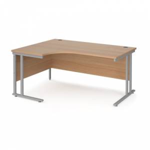 Maestro 25 left hand ergonomic desk 1600mm wide - silver cantilever leg frame, beech top