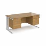 Maestro 25 straight desk 1600mm x 600mm with two x 2 drawer pedestals - grey oak top with panel end leg