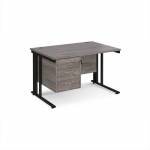 Maestro 25 straight desk 1200mm x 600mm with 2 drawer pedestal - walnut top with panel end leg