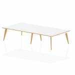 Oslo 1400mm B2B 6 Person Office Bench Desk White Top Natural Wood Edge White Frame